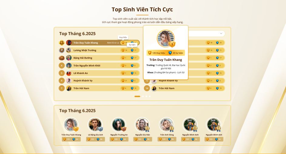 - Được ghi nhận huy hiệu tham gia sự kiện trên hệ thống